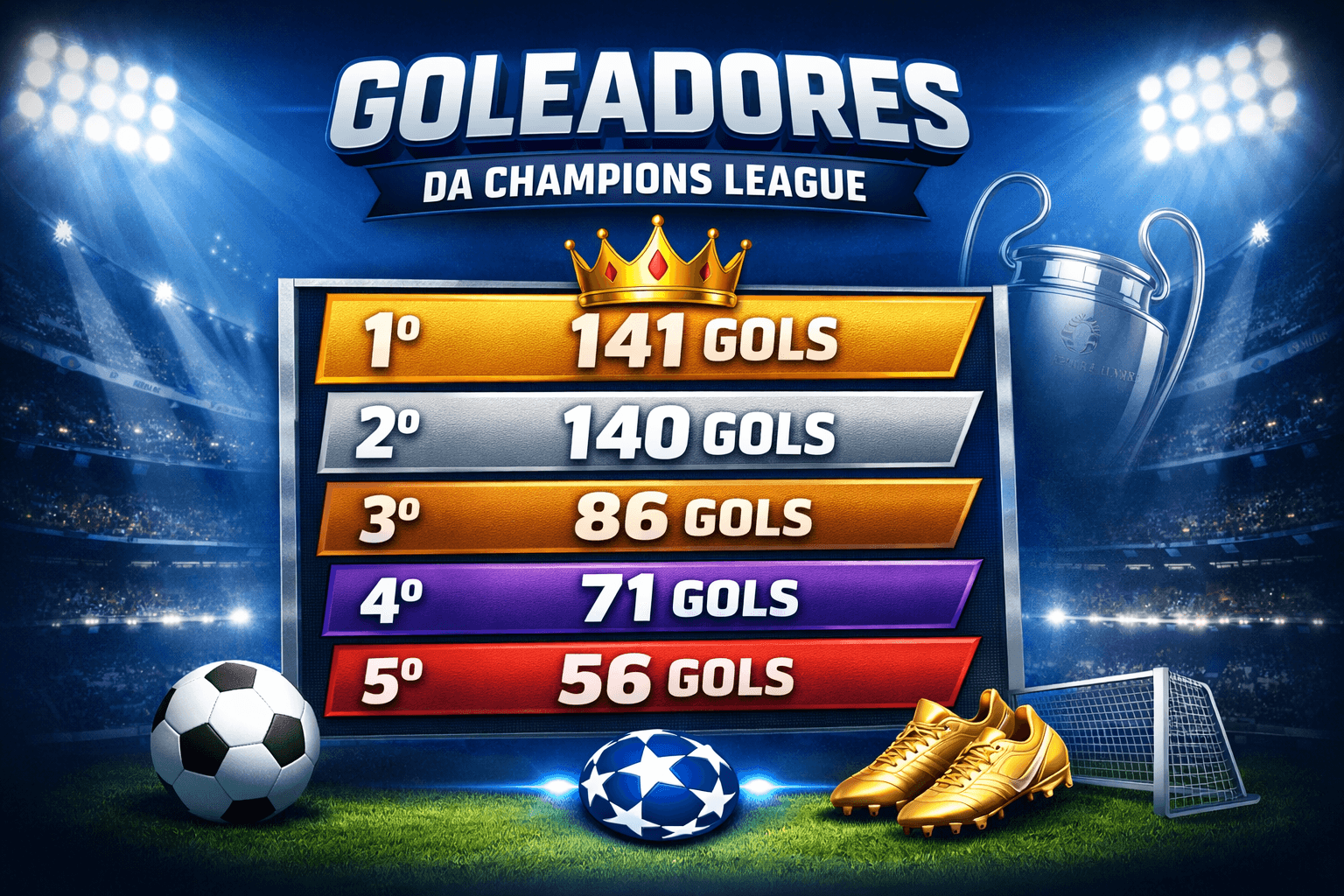 Goleadores da Champions League: Cristiano Ronaldo, Messi, Lewandowski e Benzema